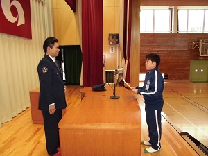 いわき中央警察署地域課草野駐在所の小林和樹様をお迎えして、6年生による