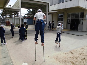 鉄棒で遊ぶ子、鬼ごっこで遊ぶ子などさまざまです。気分を改めて3校時の学習