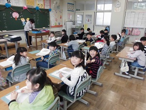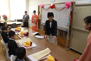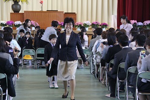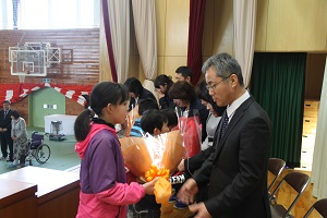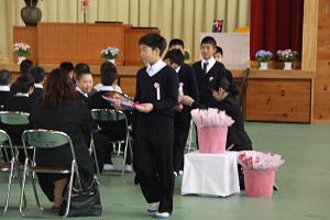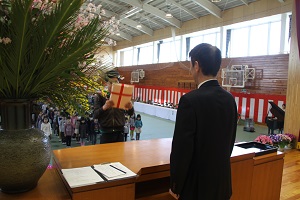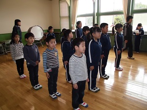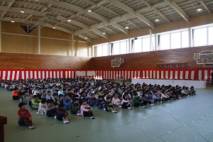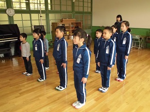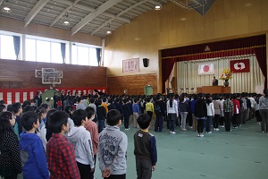 昨日は分校朝会を行いました。絹谷分校には4名の新入学生がおり、