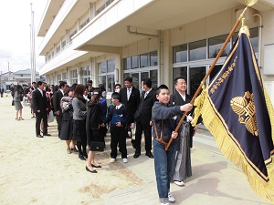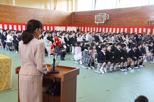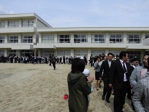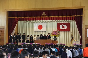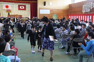 2017年4月11日 10時51分昨日は分校朝会を行いました。絹谷分校には4名の新入学生がおり、