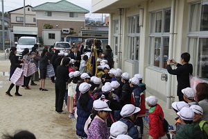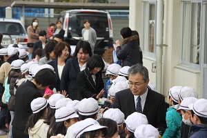 元気いっぱいに挨拶をしてくれました。校長より、「春の全国交通安