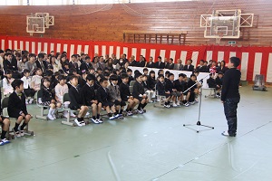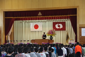 新学期のスタートにちなみ「ゆめ」をもって、それに向かって努力してもらいたいことを話されました。