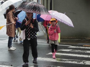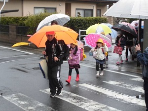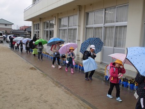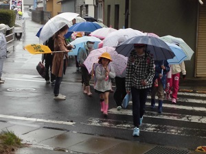 あいにくの雨でしたが、傘を差しながらも元気に登校できました。