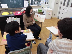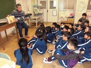 読み聞かせを行いました。ありがとうございました。特に6年生は紙芝居とし