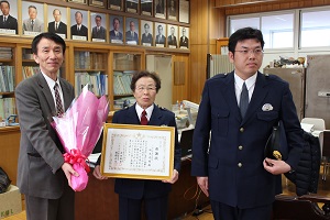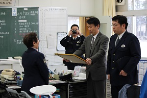 いわき中央署と草野小学校の連名で、交通指導員の坂本様に感謝状を贈呈しました。