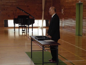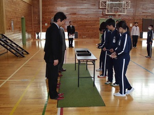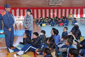坂本様は23年間にわたって、学校前の交通量が非常に多い旧国道をいつも安全に子どもたちを渡してくれます。日頃の功績が認められて、教職員一同で祝いました。今後も交通安全を呼びかけて、子どもたちを事故から守りたいと話されていました。