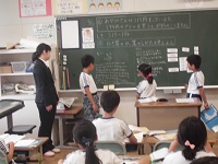 今週の月曜日に3年生の算数習熟度別授業の初任者の研究授業を行いましたが、今度は5年生の初任者による算数の研究授業を行いました。小数のわり算で、純小数でわると、商は被除数より大きくなることを理解する授業です。子どもたちは数直線を使って、筋道を立てながら考えていました。一つ一つ研修を積んで指導力を高めてもらいたいです。
