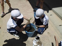 先月に田植えを終えて秋の収穫を楽しみにしている5年生ですが、今度はバケツを使っての米作りに挑戦です。草野地区には献身的に協力していただける人材が豊富におり、とても助かっております。今回も子どもたちのためにと米作りを教えていただくことができました。ありがとうございました。
