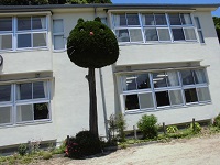 草野小には絹谷分校があります。市内で唯一の分校であり、県内には5校しかありません。今年から完全複式になり1・2年と3・4年の2つの教室だけになりました。5年生になると自転車通学で本校に通います。校歌の2番の歌詞にあるように、子どもたちは「さわやかに のびのびと」育んでいます。