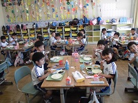 2016年6月28日 12時39分本校・分校合わせて74名の1年生は入学して3ヶ月が経とうとしています。みんな元気に登校して、活気あふれる声が校長室まで届きます。大好きな給食の時間は、おいしくいただいております。