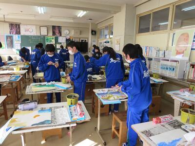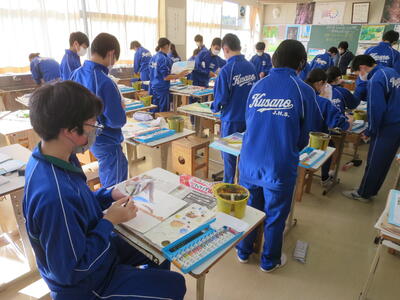 2022年12月8日 13時09分12月8日(木)、美術と家庭科の時間の様子です。