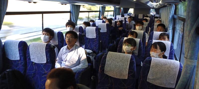 出発式の意気込んだ表情とは裏腹に、バスの中ではまったりムードでDVDを鑑賞しています。