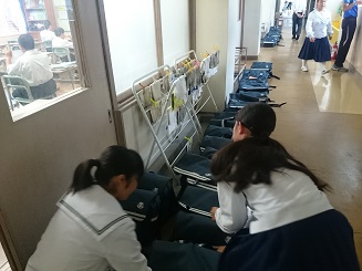 期末テスト第1日目 2016年6月23日 10時05分 本日より、1学期期末テストが始まりました。朝2階の各クラスの廊下には、鞄が並びました。 また、1階男子トイレが、洋式便座になるため工事が行われています。