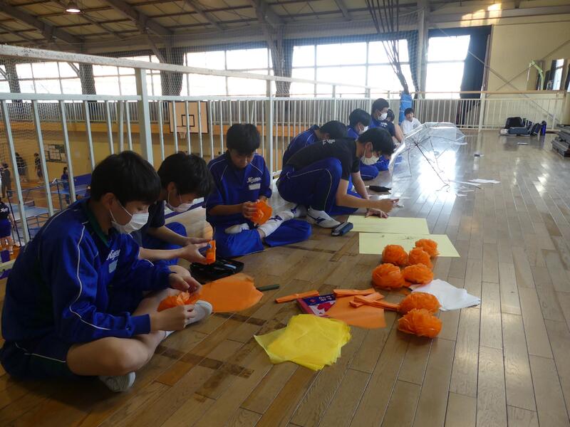 草中祭実行委員が着々と準備を進めています。装飾係が、様々な飾り付けを作成しています。