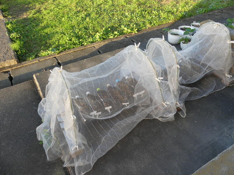 こちらは、技術科の作物栽培のその後の様子です。先日の強風のあと、担当教員が中心に整えて、生長を促しています。