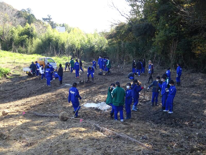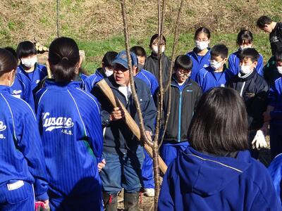 2023年12月5日 17時17分11月29日(水)、地域学習の一つとして、1年生が「万本桜プロジェクト」に参加し、桜の苗木を植樹してきました。