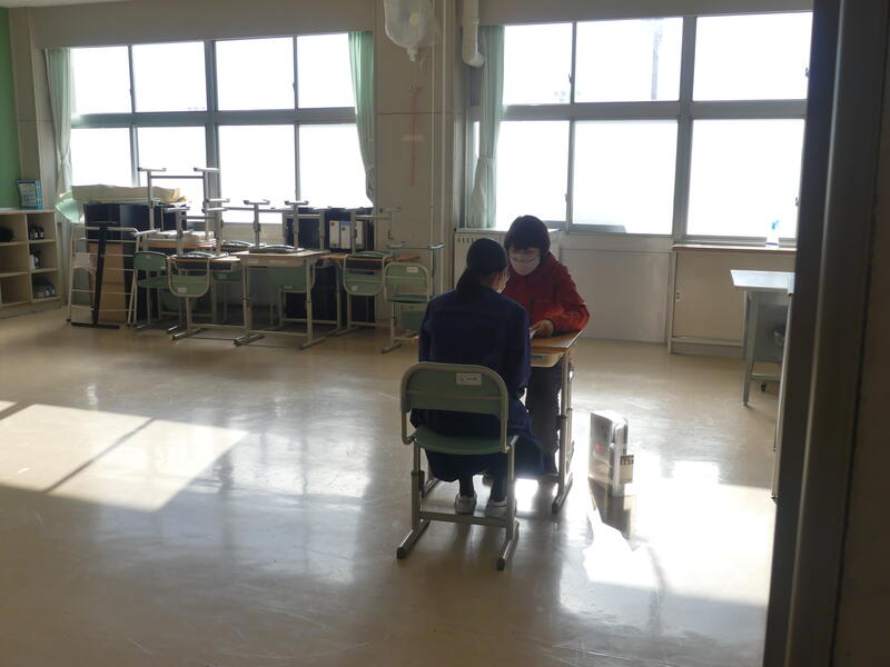 【通知表を一人一人渡している様子です 一人一人のがんばりを褒め、課題を共有します】