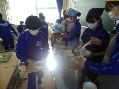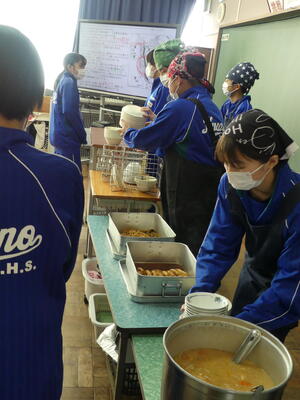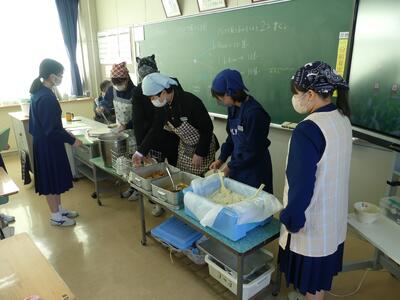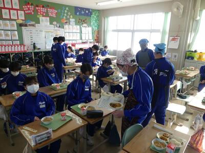 1月10日(水)、3学期最初の給食が始まりました。寒さが厳しくなる中、温かい給食は、心も体も温めてくれます。学級では、係や当番が中心になり、クラスみんなで準備をしていました。