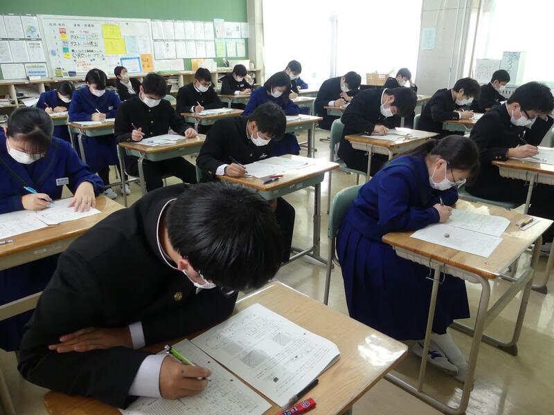 3年生は、卒業を控え、この後の進路実現へ向けて最終準備に入るため、定期テストは早めに行っています。2学期末から私立高校などの受験が始まっています。何人もの生徒が専願や併願で受験をしてきました。これからは、多くの生徒が県立高校を受験します。