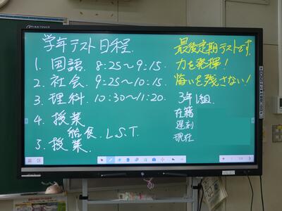 2024年1月22日 14時03分1月22日(月)、3年生は、学年末テストに入りました。