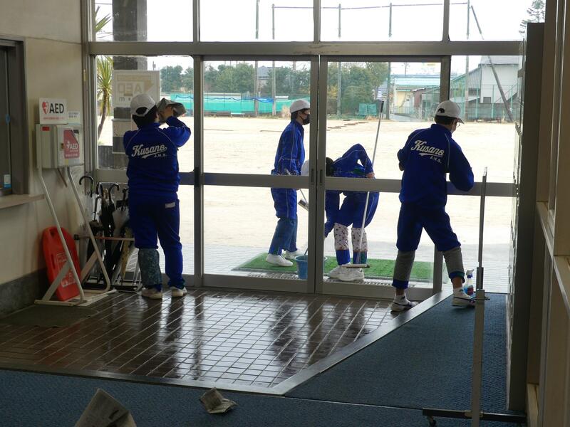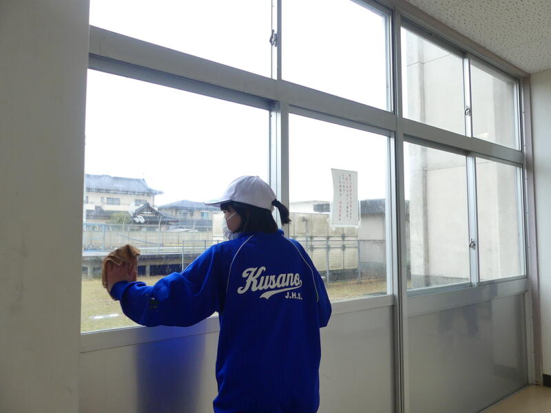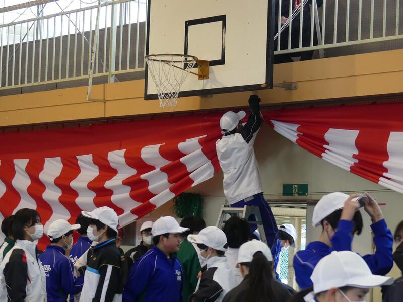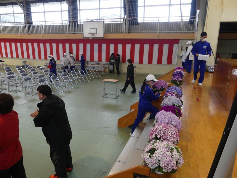明日は卒業証書授与式です 2024年3月12日 16時21分 3月12日(火)、あすの卒業式に向けて、1・2年生が中心となって準備を行いました。全校生で卒業生75名の門出を祝う式にしたいものです。 【校舎を清掃しています】 【会場も準備をしました】