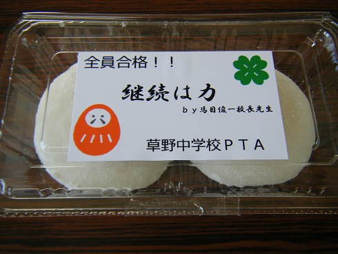 3年生の保護者の皆さんが、今年も「合格祈願餅」の作成を11月11日(土)の草野小学校の秋祭りにあわせて行いました。3年生の皆さんの全員合格を願っています。