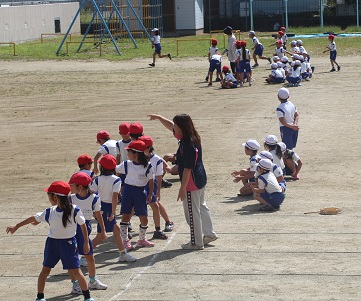 4校時開始チャイムがなると、今度は5年生も校庭に出てきました。