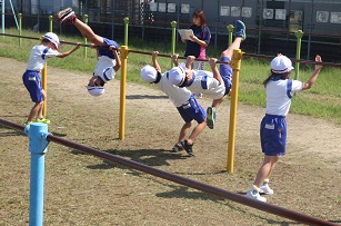 学校に戻ってきますと、2年生がリレーの後、逆上がりをしていました。