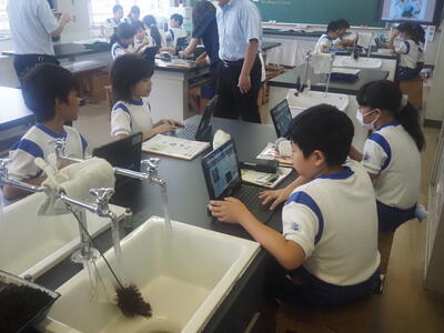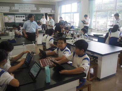 2023年9月27日 18時40分本校は昨年、今年と理科の授業は教科担任制をとっていますが、今日は午後から福島県教育委員会及びいわき市教育委員会の管理主事、指導主事の先生をお迎えし、授業の様子をご覧いただきました。また、授業後は、校長、教頭、教科担任教諭から、教科担任制のよさや子供たちへの指導の効果について説明しました。授業の様子をどうぞご覧ください。
