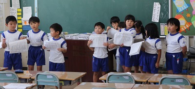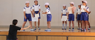 学習発表会の練習が始まりました。1年生は、3つの教室に分かれて台詞の読み合わせです。もう台本がなくても 自分の台詞を言える子もいるようです。