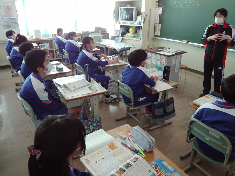 算数でした。数え棒を使って正方形を30個つくるとき、棒は何本必要か考えていました。「1年生だったら実際に棒を出して考えるところですが、5年生の今だと棒を使わなくても考えられますね」という語りかけに、正直「ドキッ」とした人もいたのではないでしょうか。1つ、2つ、3つ、4つくらいまでつくると、何か「きまり」が見えてきます。それを使うと解けるのですが、どうでしょうか。ぜひご家庭で、お子さんに聞いてあげてください。
