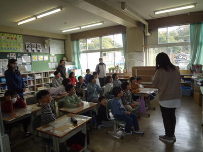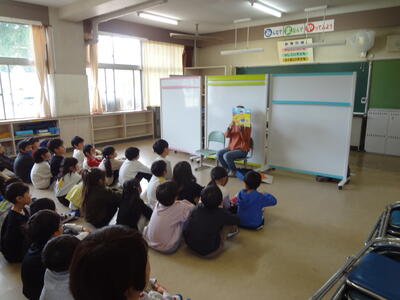 2024年11月27日 11時12分図書ボランティアの方々と学校司書の松島先生による読み聞かせがありました。