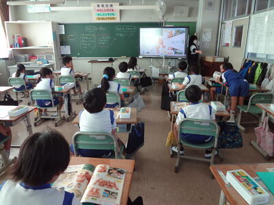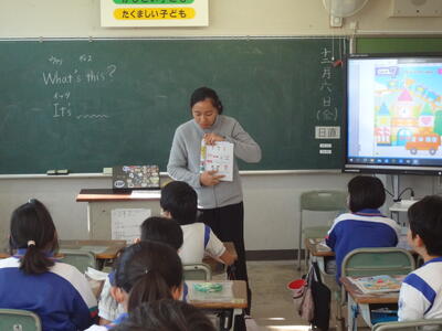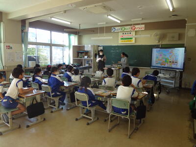 3年生は、ポーシャ先生との外国語活動の授業です。
