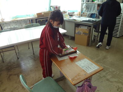みまや1組は、2年生が算数の学習、1年生が折り紙(サンタクロースづくり)を頑張りました。