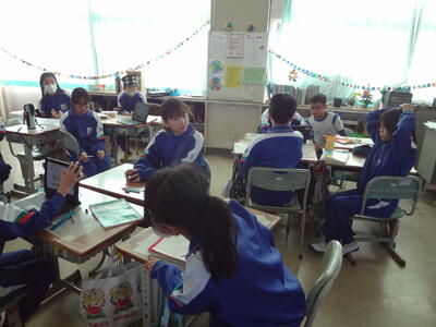 4年生は、国語でのタブレットを使ったグループ学習に取り組みました。