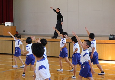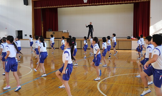 体育館中に子ども達の「カモン ベイビー アメリカ」の声が響きます。
