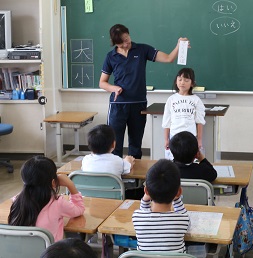 給食(お弁当)後、1年2組から、「イエ~、イエ~」の声が聞こえます。