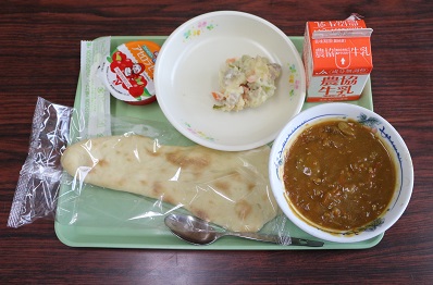 1年生の中には、はじめて「ナン」を食べる子もいました。