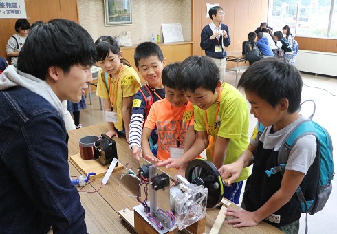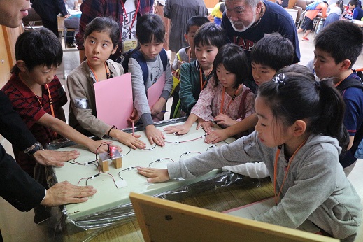 3・4年生は、手回り発電やガウス加速器、温度差発電等6つを体験。
