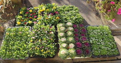 プリムラジュリアン、ビオラ、パンジーなどの苗が 息を吹き返したように見えます。