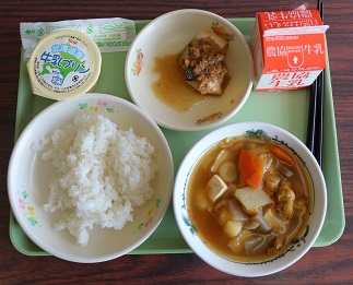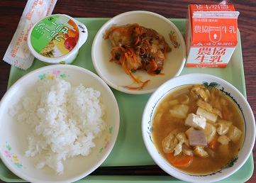 ごはん、しょうゆけんちん汁、牛乳は共通。