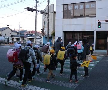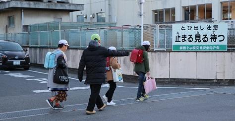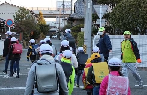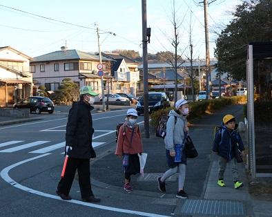 12月18日(火)風が冷たい朝。保護者の皆さんによる 朝の見守りの様子です。