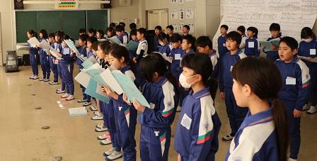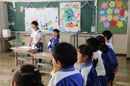 「2学期がんばったこと」や「冬休みにがんばりたいこと」の発表。