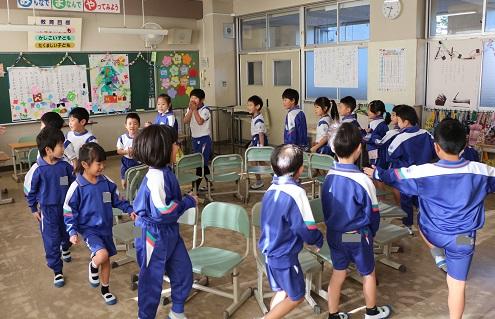 「ハンカチ落とし」をして みんなで楽しんでいました。