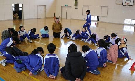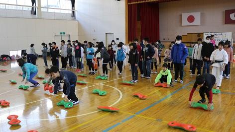 まずは、3B体操。用具を使って、体と心をほぐしました。