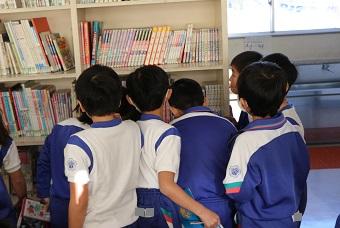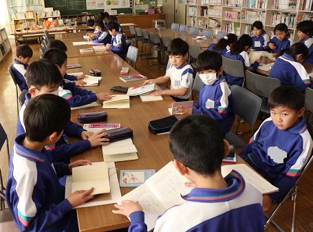高学年の図書室に到着です。着くなり、本を選んでいます。