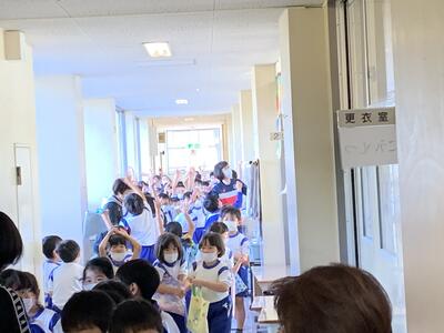 2年生が1年生を見送って、いつまでも手を振っていました。1年生も満足の表情でした。2年生は、またひとつお兄さん、お姉さんになりました。