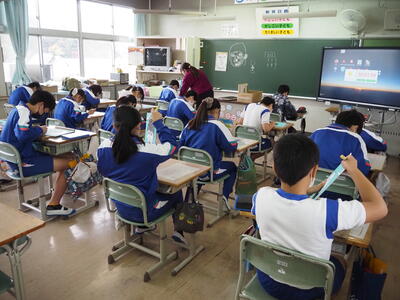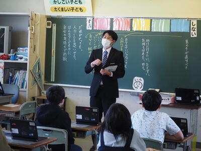 今週もしめくくりは教職員の校内研修です。今日は5年2組の教室で授業研究を行い、放課後は事後研究会を行いました。ICTを活用することにより、「主体的・対話的で深い学び」の実現を図ることを目指していますが、今日は特別の教科「道徳」についての研修でした。
