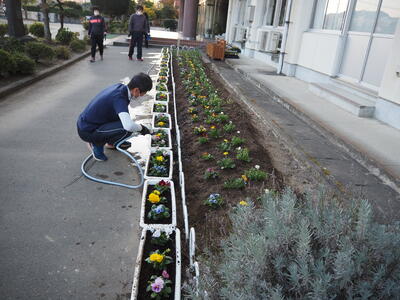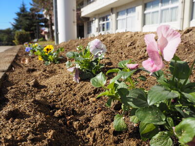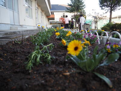 みなさんおはようございます。先週職員と自主的に手伝ってくれた児童により植えた花が根付いたようで、今朝は元気な様子が見られました。寒いけれども元気です。