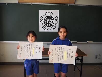 続いて、国保健康ポスターの表彰です。夏休みにがんばって仕上げた作品でした。市長さん名の賞状でしたが、遠野和紙でできていました。